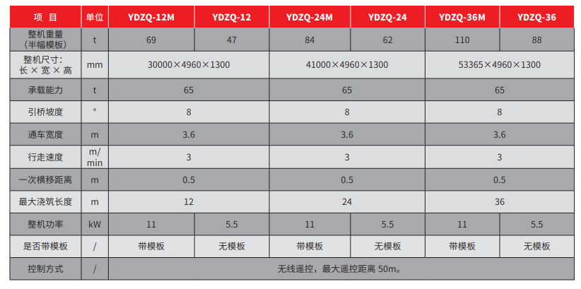 YDZQ-24M/G 仰拱桥模台车净跨度大于24m,模板长度为12m;很好地解决了隧道施工过程中仰拱施工与前方工作面作业的工序干扰问题,为隧道整个工序循环的流水化、快速作业提供了有力的基础保障。