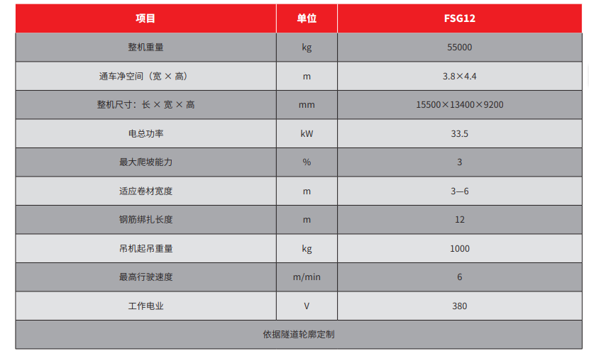 该设备集防水板铺设与钢筋绑扎于一体,专门用于隧道防水施工,具有防水板卷材起吊上料功能、整体纵向自行走功能和横向平
